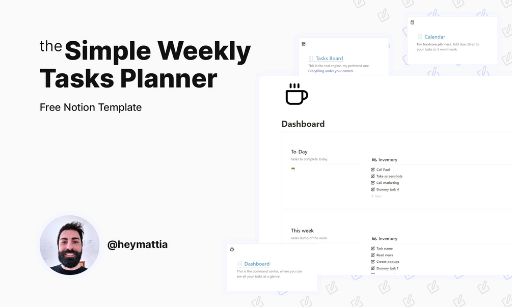 To help you there, I've created the Simple Weekly Tasks Planner template for Notion.